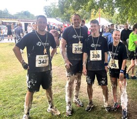 Die Rede ist vom Max Buddels Funlauf, an dem Lea Gottschalk, Tobias Butscheid, John Weigandt und Rainer Krings teilnahmen. Gemeinsam starten und ins Ziel laufen, dazwischen 15 verschiedene Hindernisse überwinden: über Baumstämme klettern, Sandsäcke tragen, durch Lkw-Reifen kriechen oder durch ein Matschbecken robben und ein Stück durch das Flüsschen Erft laufen. Das alles galt es zu absolvieren. Eine knappe Stunde dauerte der 4,5 Kilometer lange Hindernislauf und nach der Medaillen-Verleihung ließ das ID-Team das gemeinsame Erlebnis zwischen Foodtrucks und verschiedenen Event-Ständen ausklingen. Erst als der Matsch an der Kleidung vom heißen Sommerwetter getrocknet war, fuhren alle glücklich und zufrieden nach Hause. Ein Abenteuer mit garantiert guter Laune, das die ID-Kolleg*innen im nächsten Jahr wiederholen wollen.