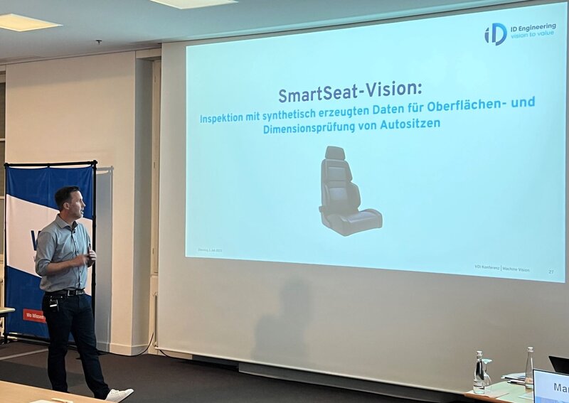 Im Tandem waren die Rollen perfekt aufgeteilt. Dr. Wanner erläuterte zunächst auf der wissenschaftlichen Ebene, worum es sich bei synthetischen Daten handelt und wie man sie sensorrealistisch herstellt.ID-Machine Vision Spezialist Sartor stellte anschließend anhand von Praxisbeispielen vor, Welche Bedeutung sie für die industrielle Bildverarbeitung haben.